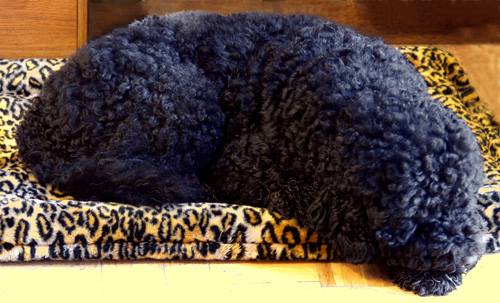 She was a working dog, whose career embraced all aspects of customer service. Her daily tasks consisted of heralding, greeting, herding, therapeutic counselling, security, product demonstration, entertainment, dispute resolution, and social mediation. Her hobbies included collecting and displaying faux-fur squeaky toys, performing a vast repertoire of circus tricks for her adoring public, and parading to show off her beautiful black curly coat. She was a connoisseur of fine foods and a bon vivant who enjoyed sharing meals with companions and strangers alike.